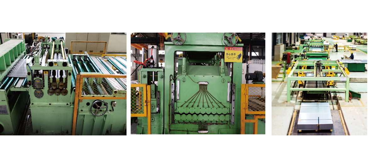 KP-003開平機(jī)組,系進(jìn)口的專業(yè)超薄板鋼卷整平裁剪設(shè)備。該機(jī)采用性能優(yōu)越的日本“RELIANCE”直流控制系統(tǒng),主要電機(jī)、電氣元件、軸承等零件均為高品質(zhì)名牌元件,確保了該機(jī)高速、穩(wěn)定的運(yùn)行。加工原料鋼卷重量最大可達(dá)25噸,直徑2000mm,寬度1850mm,有19輥精整機(jī)構(gòu),產(chǎn)品平坦優(yōu)良;該機(jī)組還配備了日本專利的高速連續(xù)回旋式剪床,鋼板經(jīng)NC計(jì)算機(jī)控制定尺裝置精密計(jì)算,產(chǎn)品精度優(yōu)異,生產(chǎn)效率一流,可裁剪0.3-4.5mm厚度的鋼板,疊料站可收400mm-5000mm的板材,并配備平行分離式無(wú)傷收料托架,從而使產(chǎn)品擁有整齊的外型。主要加工冷軋、鍍鋅、烤漆、馬口鐵、不銹鋼、鋁合金、銅合金等材料。